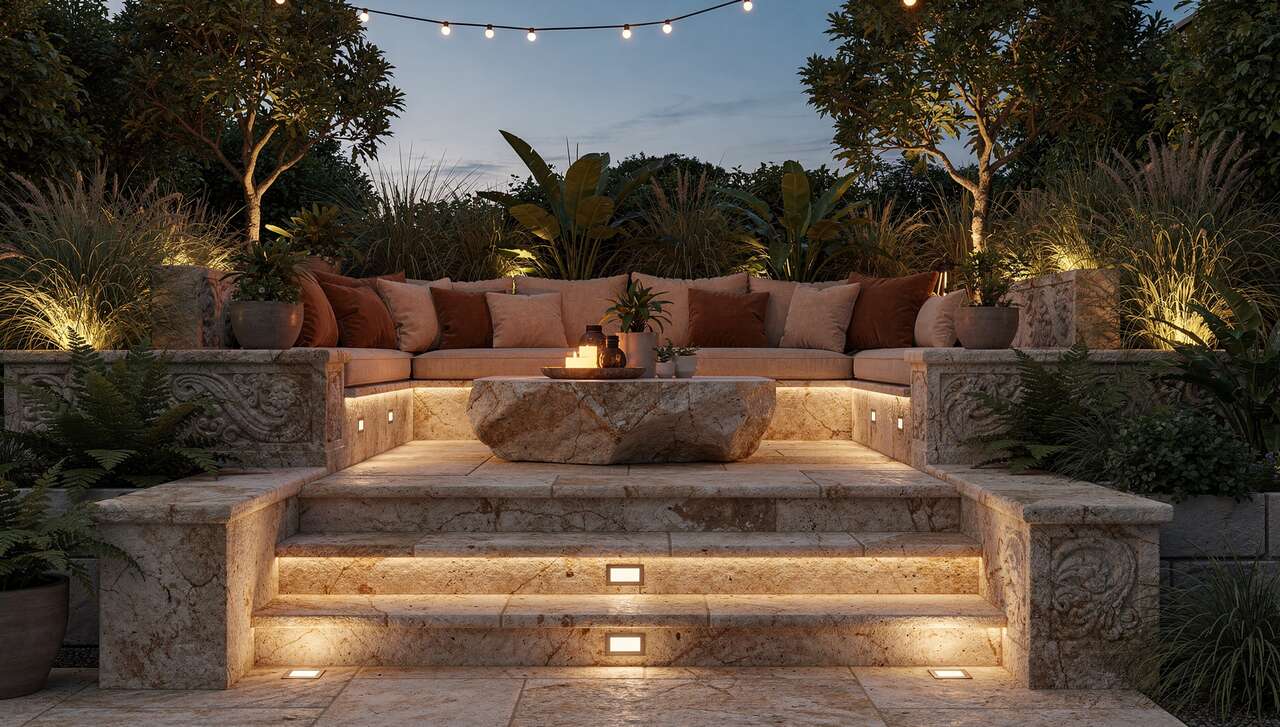 Terrasse enterrée en pierre naturelle pour un style robuste